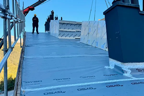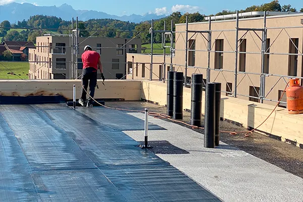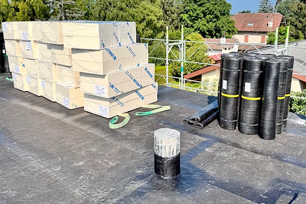 La membrane Logitalp TPA50 offre une excellente reprise du bitume à la chauffe, avec un suintement parfaitement équilibré qui garantit une soudure nette et régulière en rive. L’adhérence est immédiate et l’anti-arrachement très performant : une fois posée, ça ne bouge plus. Même en sollicitant la membrane, elle reste bien en place. C’est un produit fiable qui met en confiance sur tout le chantier.
